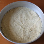 Roll the dough out to 10 inches/ 25.4 cm in diameter, transfer the dough to the pan.