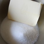 Beat together the butter, sugar, and salt, until fluffy and lightened in color.