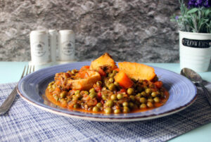 After 15 minutes, add dill and simmer for another 15-20 minutes. The peas are ready once there is no water left and the vegetables are soft.