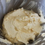 Add the flour mix to the butter mixture, beating gently until everything is well combined.
