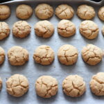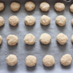 Line a baking sheet with parchment paper. Break off small pieces of dough, form into a small ball. Press the dough ball to flatten a bit and place on baking sheet.