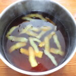 Combine the sugar, water, cinnamon, orange and peel in a saucepan, then bring to the boil. At this point, simmer uncovered for about 5 minutes until the syrup has thickened slightly. Then take out the orange and lemon peel, add honey and set aside to cool for 3-4 hours. It must be cold by the time the cookies come out from the oven. You can prepare the syrup from the day before.