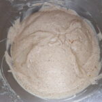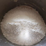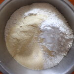 In a bowl combine all-purpose flour, semolina flour, baking soda and baking powder. Mix well.