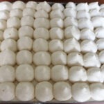 Dip ladyfingers on both sides quickly into syrup and arrange them into the pan or mold until you have used half the cookies and then evenly spread over half of the creamy mixture.