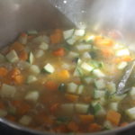 After 5 minutes add zucchini, cover and continue simmer for 10 more minute or until the vegetables are tender.