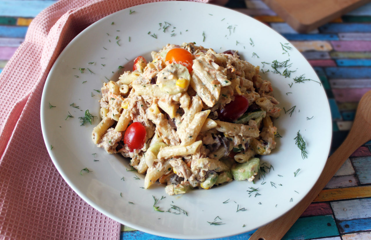 This tuna pasta salad is a simple and delicious combination of tuna with chopped vegetables. It’s great for a light summer meal.