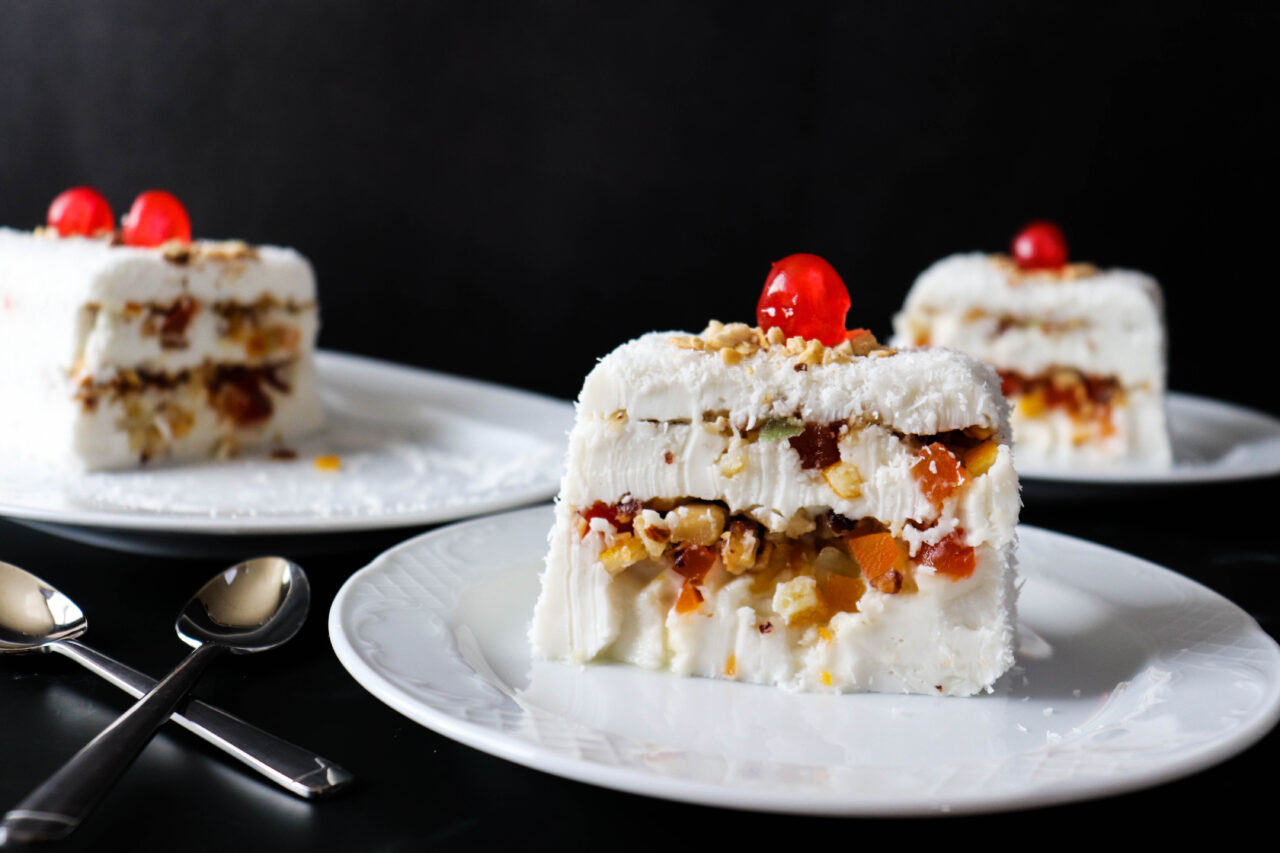 Cover with plastic wrap and refrigerate for at least 4 hour before serving. Decorate with shredded coconut, dried nut and candied fruits if desire.